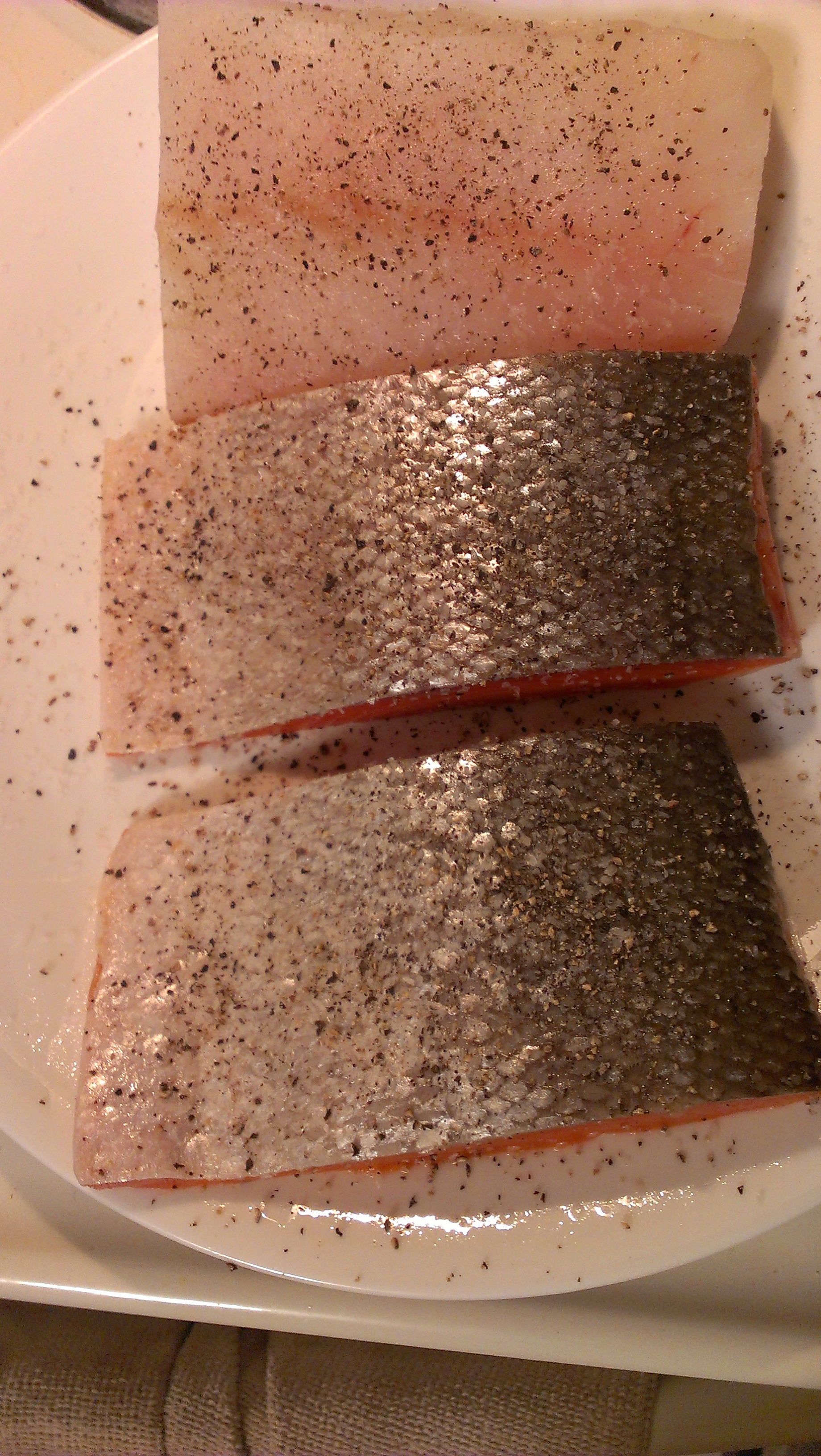 Season fish with salt and pepper